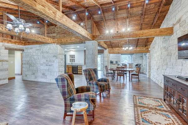 Premier Lake Buchanan Waterfront & Commercial Investment Opportunity! Welcome to Scott's Landing Resort-an exceptional 5 +/- -acre property on Lake Buchanan with over 1,200 ft of shoreline and frontage on RR 2241. This unique opportunity blends hospitality, residential, and commercial potential in the Texas Hill Country. The 7,080 sq ft main residence spans three stories with an elevator, media room, safe room, and large entertaining decks and hot tub overlooking the lake. A separate 1,566 sq ft 3BR/2BA guest home is perfect for management or extended stays and rental income. The resort includes 14 rental units-several with full kitchens and private entrances-all separately metered. Strong growth potential as a short-term rental business, corporate retreat, or family compound. Guests and visitors enjoy access to a indoor/outdoor pavilion equipped with a commercial kitchen, commercial BBQ pit, pizza oven, and spacious patios-an ideal setting for events, reunions, or group gatherings. Commercial improvements include: - 26 RV slips - Coin laundry, multiple patios, 4 Conex units - Permissive zoning for multi-family and short-term rental use. Scott's Landing combines lakeside serenity with income-producing infrastructure and commercial frontage. OWNER FINANCING IS AVAILABLE AT AN INTEREST RATE OF 3.5%!