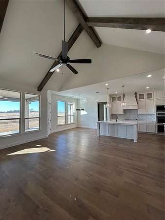 Blackstar Estates is a stunning development in Decatur ISD, featuring fenced, 2 acre treed lots with no HOA, MUD or PID. Subdivision is midway between Decatur and Denton off HWY 380, thereby offering close access to both Hwy 287 and I35. All lots are side fenced with pipe and no climb wire, and this property features an extra wide lot, creating more distance from your neighbors. Home is taupe painted brick with a gray-brown trim and a weathered wood composite roof, and it also features a neutral interior color palette with grays and whites. An open and split floor plan with 4 bedrooms and an office off the foyer is anchored by carpet, tile, and engineered wood. Decorative crown molding and baseboards, ceiling fans in all rooms, textured walls with rounded corners, vaulted ceilings and wood beams are standard. Primary closet conveniently connects to the utility room. Creamy, white kitchen featuring custom cabinets and a double oven overlooks a large kitchen island and living room with wood burning fireplace. Property includes full gutters, sod, flower bed landscaping, and a sprinkler system. Home is energy efficient with Radiant Barrier decking, a 15 SEER heat pump, R-38 blown in ceiling insulation, and R-15 Batt wall insulation. Enjoy the views from your covered back patio with wood burning fireplace, and rest easy with a builder who prides himself with quality workmanship and who offers a 1-2-10 home warranty to back up his product. Please see documents uploaded in the transaction desk. Builder is offering a $10K preferred lender incentive.