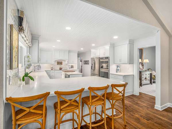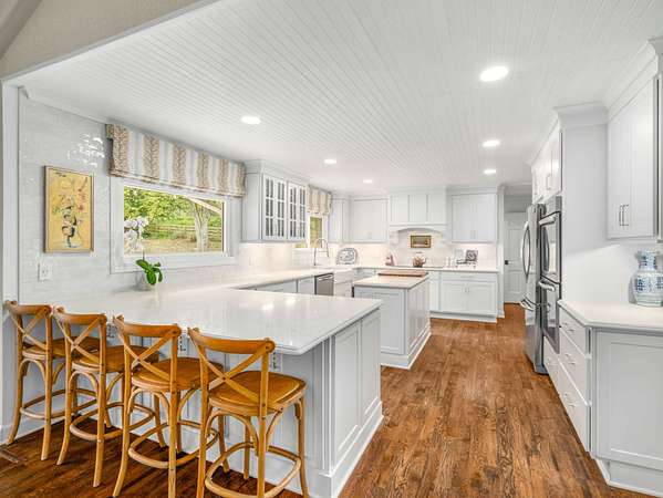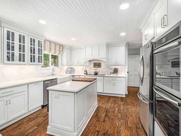 Top-of-the-line renovation! No expense spared* Reimagined interior* 10' foyer & dining room ceiling* Vaulted Great Room, Owner's suite & Sun Room* Beadboard kitchen ceiling* Light-filled kitchen renovated in 2021~ oversized center island quartz French Ogee edge countertop* Frigidaire Induction 5 eye glass cooktop + DBL convection ovens microwave & frig* Spacious Prep/drop zone +pantry w/beverage refrigerator* Beautiful hardwood floors* Taj Mahal hearth in Great Room* Marble floor in Sun Room* 1.5 acres on a dead-end street! Farm-fenced backyard~2024* Easy outdoor entertaining on your 25' x 35' PA tri-color bluestone patio* Slate front porch steps* Incredible Mark Simmons decorating* 4 CAR Tandem Garage with epoxy floor* Do not hesitate~this home is a rare find! No HOA~ bring your chickens!