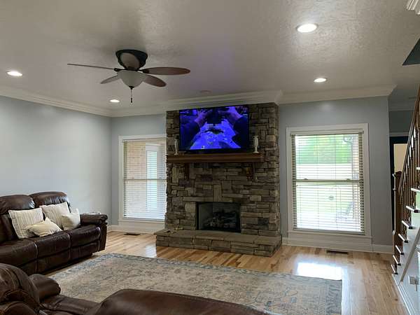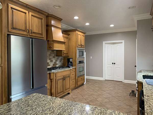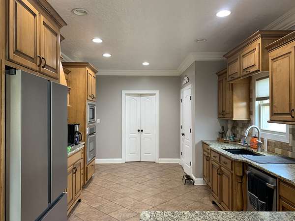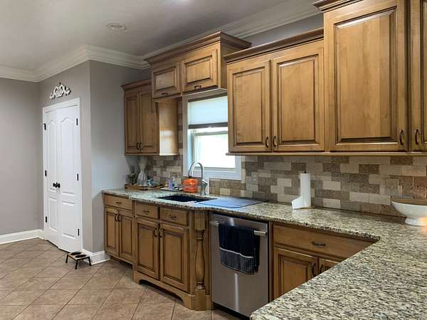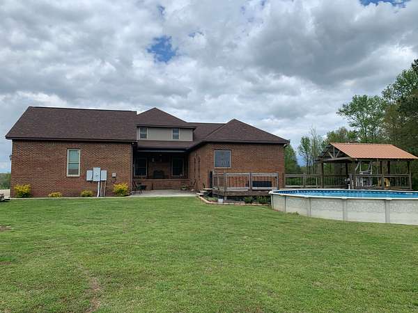 A standout feature of this property is the spacious two-story brick home, custom built in 2009. The residence totals approximately 3,500 square feet and includes 4 bedrooms and 3 full baths. The ground floor boasts a large master suite with a tile shower and garden tub, plus two additional well-sized bedrooms. The living area is open and inviting, centered around a gas log fireplace, with a large dining space for family gatherings. The custom kitchen is outfitted with a gas cooktop, granite countertops, custom maple cabinetry, a spacious pantry, and a breakfast area. Upstairs, a huge bonus or recreation room provides added flexibility, along with an additional bedroom. Hardwood and tile flooring are featured throughout much of the home, which also includes a tankless water heater, a natural gas heat pump, and a two-car garage. Outside, an above-ground pool offers space to relax after a long day on the farm.