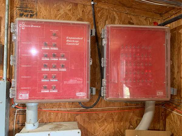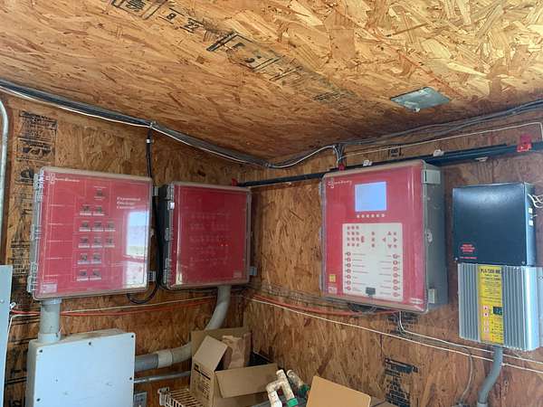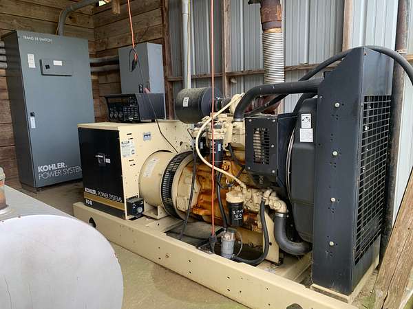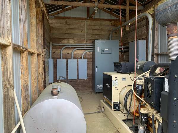 The poultry operation is equipped with ChoreTronics 2 controllers, Chore-Time C2 Plus feeders with Turbo Growers, Ziggity drinkers, LED lights, and Chore-Time brooders. The poultry houses are constructed with a chain wall design, featuring solid interior and exterior walls. A 150 kW Kohler generator provides backup power, and a Total Radio Alarm system is in place for enhanced operational security. The farm operates on city water and natural gas.