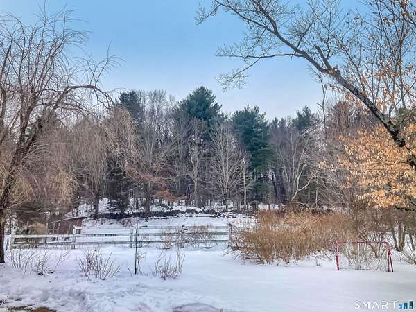 Spacious farmhouse living at its best! This charming 5-bedroom, 2 full bath, and 1 half bath home sits on an expansive 11 acres, offering endless possibilities for privacy, recreation, or hobby farming. Inside, you'll find hardwood flooring throughout and two cozy fireplaces that add warmth and character. The versatile layout includes two additional family rooms that could easily serve as extra bedrooms, a home office, playroom, gym, or guest space - perfect for today's flexible lifestyle needs. Tucked away in a truly special setting, this home is surrounded by federal land, offering direct access to scenic hiking and horseback riding trails just steps from your door. Enjoy the peace and privacy of nature while still having the convenience of recent updates, including a newer boiler and porch. A seldom-available gem with room to grow both inside and out! Enjoy the space, charm, and opportunity this beautiful property provides with peaceful surroundings while still being in close proximity to Mansfield Hollow State Park, as well as nearby shopping and dining options. A rare opportunity to own acreage, space, and convenience all in one - schedule your showing today!