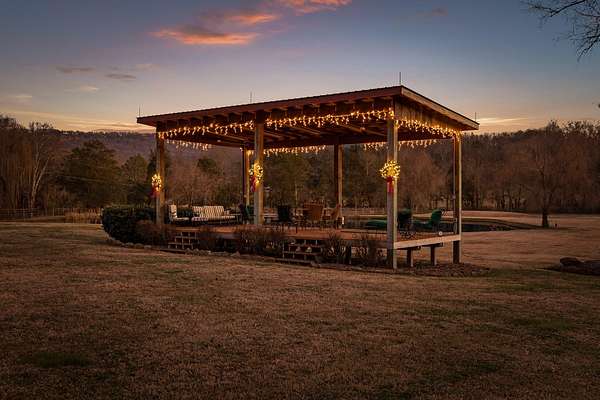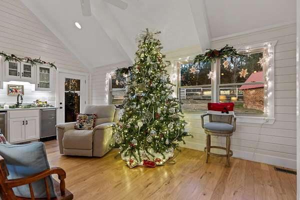 A once in a lifetime opportunity to own this fabulous picture-perfect farm/residence on 6.7 acres in Wildwood, Georgia. This charmer has a stocked pond, a 6-stall barn with a concrete floor, party pavilion, practice tee box and green, and privacy. The home was built in 1970 but has undergone several renovations. The most recent update is a family room with a vaulted ceiling, stone woodburning fireplace, built in bookcases and a wet bar. Other improvements include all new windows and gutters, 9 raised flower beds and a recently sealed driveway. There is a smoke house, tractor barn, and a corn crib that has been turned into an adorable one bedroom/bath guest cottage. The property is fenced all around. The primary bedroom is downstairs with an adjacent sitting room/den. A new bathroom and walk-in closet were added to enhance the liveabilty of this WONDERFUL HOME.