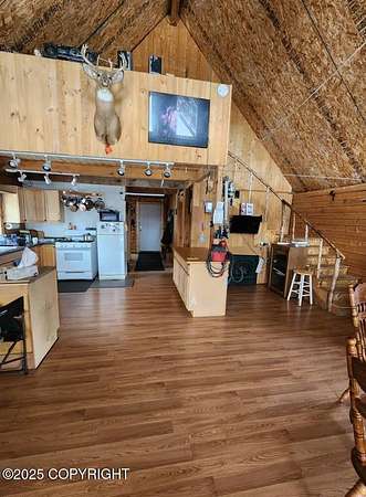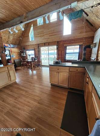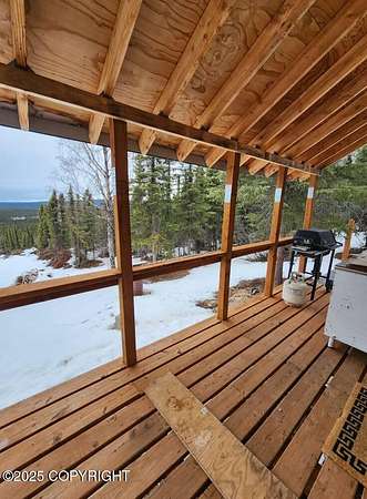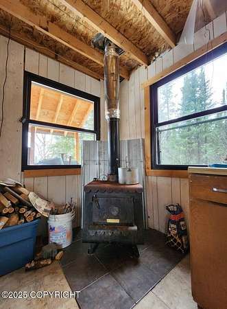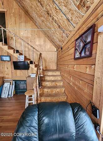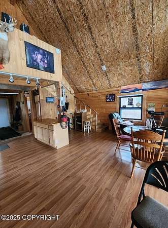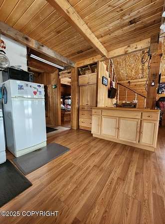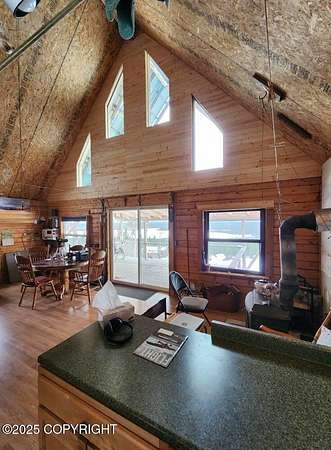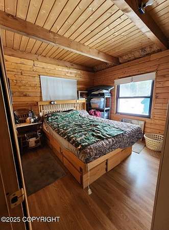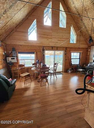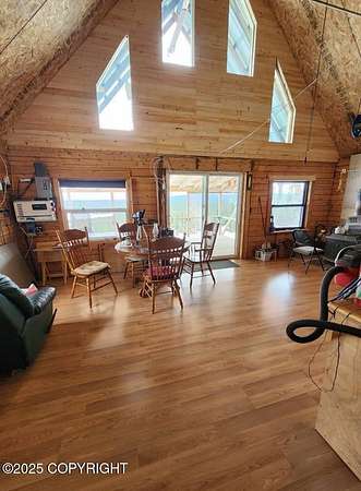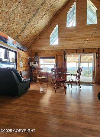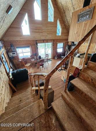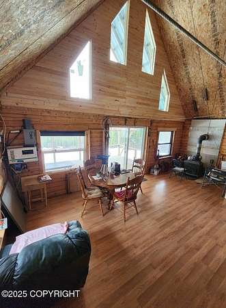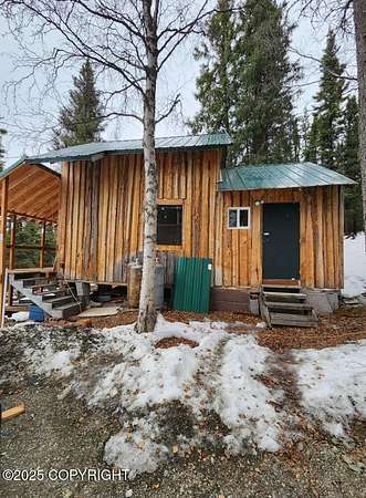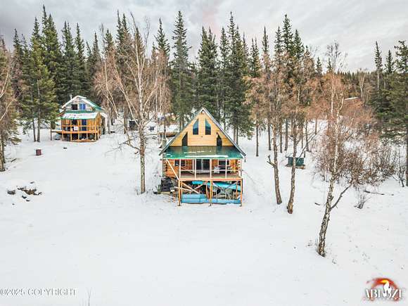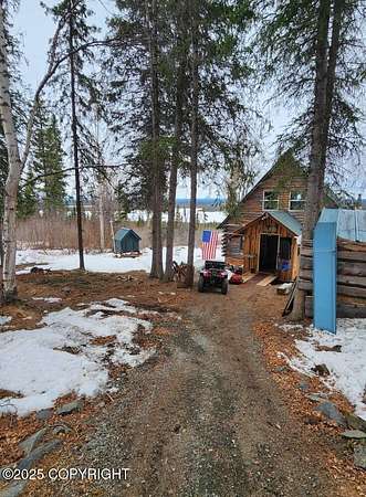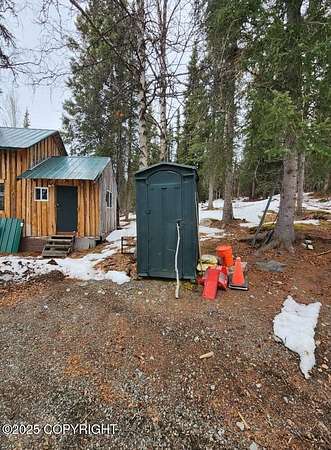 Nestled off the grid, accessible year-round, north of Sourdough. Two beautiful log cabins. The primary has two bedrooms; the second is a guest cabin with one designated bedroom and bunkroom. A legal right-of-way easement from the unnamed lake to the cabin allows for float plan access. views of the lake ... read more ... A legal right-of-way easement from the unnamed lake to the cabin allows for float plan access. (Per seller) The lake is estimated to be long enough for most float planes (i.e., C206, C185, etc.). The cabin has views of the lake, the Chugach Mountains, the Talkeetna Mountains tops, and Mt. McKinely(Denail) to the west on a clear day.