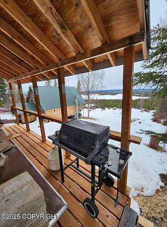 - Airplane Access, Deck/Patio, Fire Pit, Outhouse, Road Service Area, Sloping, View, Waterfront Access