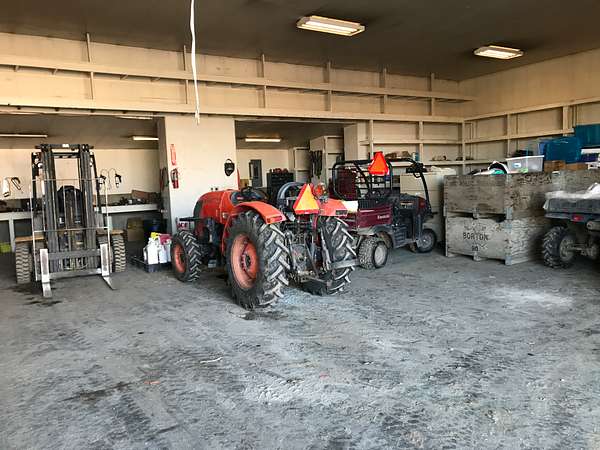 2 tractors, forklift, wind machine, Ladders, sprayers, blowers, and harvesting equipment