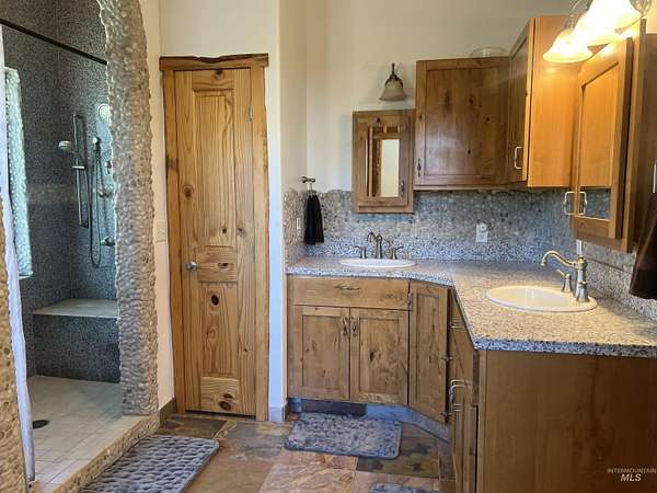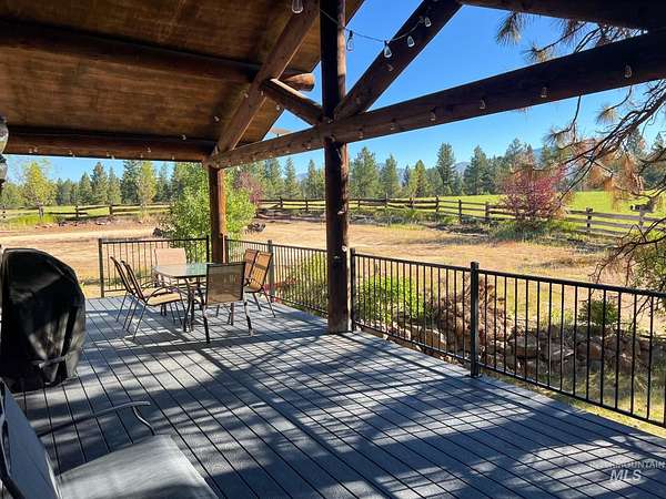 A true gem in Prairie Idaho.This custom Precision Craft log cabin is nestled in the most beautiful place, tucked back in the pine trees where you can find peace and serenity.1hr from Boise situated on a spacious 52 acres of land with a year round creek, large shop, 20x20 barn, wine cellar, corral & hay fields. Be captivated by the large, open living room with vaulted ceilings bathed in natural light. Enjoy the warmth of the wood fireplace & heated floors providing a cozy retreat. The heart of the home, the stunning kitchen with alder cabinets, granite countertops creating an inviting space for culinary delights.The master suite beckons with a luxurious jacuzzi tub & walk in shower creating a spa-like oasis. Step outside into your private paradise under a covered patio the ideal setting for relaxation and entertaining. The home is equipped with a 16,000 watt generator for back up offering peace of mind. Immerse yourself in the beauty of the mountains enhancing the overall lifestyle experience.