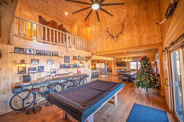 Sweeping long-range mountain views over the Green Mountain National Forest, Mount Snow, Haystack, and Stratton ridgelines from this stunning 2020 Moosehead log home. Situated on 7+ acres bordering thousands of acres of National Forest, the property offers direct access to VAST snowmobile trails, space to create your own private loops, and exceptional privacy — all while remaining just a short drive to ski resorts, lakes, and other premier Vermont destinations. The home features a gorgeous open floor plan with extensive natural woodwork, perfectly suited for a Vermont retreat. The chef’s kitchen includes stainless appliances, a large island, and flows seamlessly into the dining area with wood and tile floors throughout. A vaulted billiard and bar area with live-edge bartop creates a true entertaining centerpiece, complemented by a cozy living room and play area, plus a spacious loft overlooking the main living space. With five bedrooms, including one en suite, and two upscale full baths, there is ample space for family and guests. A large mudroom entry with wood stove is designed for four-season gear, while the covered front porch provides the perfect setting to take in the panoramic views. Additional features include Tesla whole-home battery backup and easy access from a paved road — ensuring convenience and peace of mind in every season. A rare combination of privacy, recreation, modern efficiency, and iconic Vermont scenery.