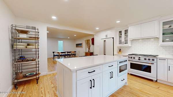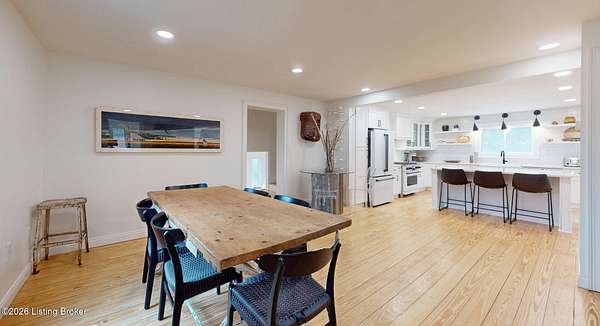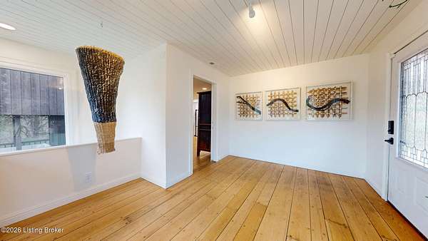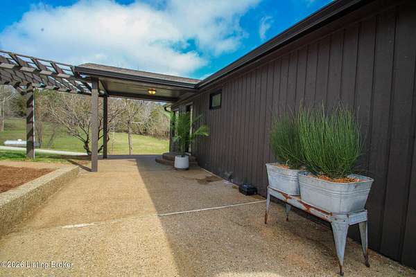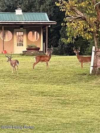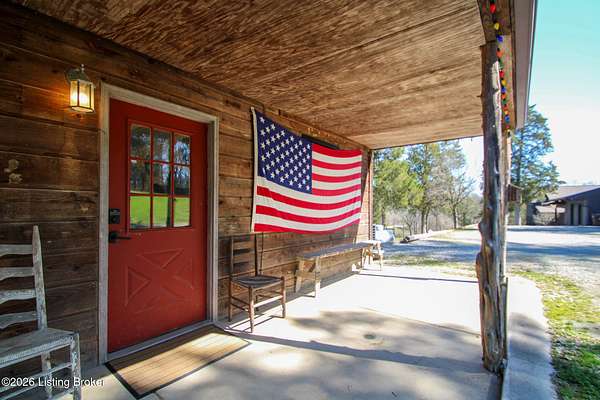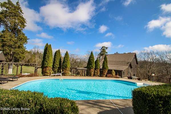 Explore a truly special property tucked along the scenic countryside of sought-after Long Run Road. Set among rolling hills, mature trees, and peaceful open land, this one-of-a-kind estate blends modern living, rustic charm, and exceptional outdoor amenities into an unforgettable retreat in Louisville's East End. The main residence has been beautifully renovated, with a clean, modern aesthetic that preserves its warm architectural character. Light-filled living spaces feature wide-plank hardwood floors, designer lighting, and thoughtful finishes throughout. The stunning kitchen anchors the home with custom cabinetry, quartz countertops, subway tile backsplash, open shelving, and a large island. Off the kitchen is a beautifully designed laundry room. The sprawling living room centers around a striking white brick fireplace with reclaimed wood mantel. Step outside and the property truly unfolds. A large patio overlooks the peaceful landscape and leads to a sparkling in-ground pool, charming gazebo, and hot tub- the perfect setting for entertaining. Adding even more value and flexibility is the separate guest house- a charming rustic cabin complete with covered front porch, vaulted ceilings, kitchen, living space, bedroom area, and full bath. The grounds offer incredible versatility and lifestyle opportunities- a picturesque pond with private dock and a beautiful outdoor pavilion and deck area. For those needing space for hobbies, equipment, or vehicles, the property includes a large detached garage/workshop with covered parking, along with multiple outbuildings and barns that provide storage, workshop space, or potential for small hobby farming. The fenced pasture areas, red barns, and open green space make the property equally suited for animals, gardening, recreation, or simply enjoying the peaceful countryside setting. A rare opportunity to own a private retreat where nature, comfort, and character come together beautifully.