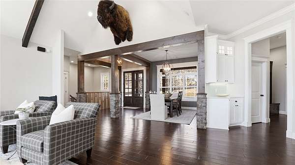 Tucked away in the sought-after gated community of Autumn View, this exceptional estate spans approximately 12.5 acres of secluded beauty. Just 15 minutes from downtown, you will not find a more private estate. Built in 2015, this property offers 6,800 sq ft of living space plus a 3,200 sq ft shop and has been fully updated. The 5,462 sq ft main residence features 5 bedrooms, 5 baths (3 full, 2 half), an open eat-in kitchen flowing into the living area, formal dining, private study and a walkout basement with kitchen, bar, and entertainment space. A 1,337 sq ft pool house includes a full kitchen, living area, bedroom, bath, laundry and gym with glass garage doors opening outdoors. Enjoy a heated inground pool with tanning ledge, spa, rock grotto water feature, flagstone patio, outdoor shower and landscaped grounds. Additional highlights include a 40x80 detached garage with car lift, new HVAC units, new septic, epoxy-floored garage and whole home Generac generator. Zoned for Vandergriff and McNair schools.