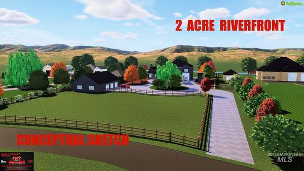 3.8% OWNER OWNER FINANCING AVAILABLE!! Nestled within the prestigious Riverfront Estate Subdivision lies an extraordinary 2-acre lot boasting 150 feet of prime river frontage along the majestic Snake River. This picturesque parcel offers boundless opportunities for creating your own retreat. Imagine your dream home amidst the tranquil beauty of this riverside sanctuary, where every day begins with breathtaking sunrise views and ends with a sunset painted the sky. The opportunities are endless on this beautiful level lot; build your dream home, bring all your animals, (goats, horses, cows, etc.) put a boat dock on your own personal riverfront; watch the sunrise, sunset, fish, boat, kayak, etc. Enjoy the solitude, peace and quite of your own peace of heaven, knowing that you're only 20 minutes from Nampa and 45 minutes to Boise where all of your city needs are at your finger tips. Bring your builder and build your dream home! FEEL FREE TO COME AND WALK THE LOT! CONCEPTUAL DRAWINGS IN PHOTOS!