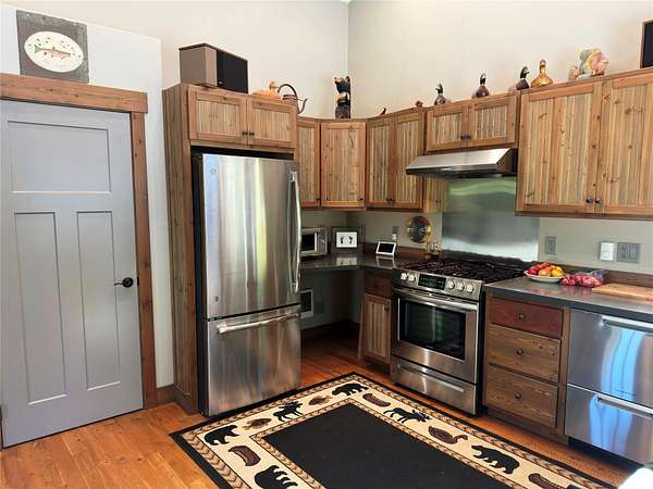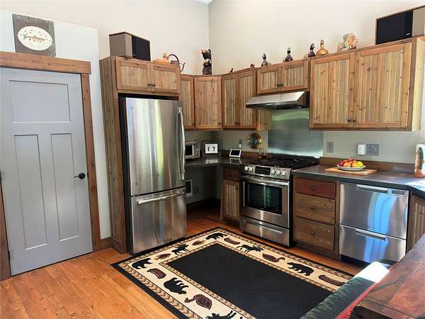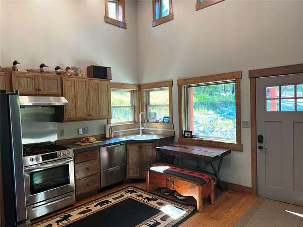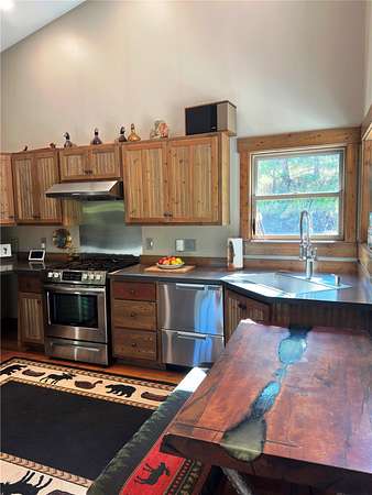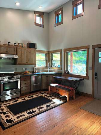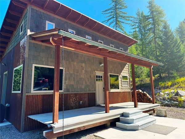 This cleverly designed home has quality craftsmanship touches that standout on both the exterior and interior. Super energy efficient spray foam insulated walls & roof. Circle sawn fir flooring and custom fir trim. 5' sloped ceiling. Numerous high windows provide soft, natural lighting. 4ft lighted storage crawlspace is clean & dry. Quality stainless steel kitchen & appliances. Corrugated rusted metal siding & cedar shingle trim provide a unique, attractive, and maintenance free exterior. Enjoy the wildlife from the covered porch. Location offers peace, privacy and then some...and one barely visible neighbor. You'll see a handful or so of cars per day on the road going past this home, & you will know the drivers! Immediate & private access to thousands of acres of timber company land & Foys to Blacktail Trail. Hunt, ski, bike, hike, ride horses or ATVs right from your door.