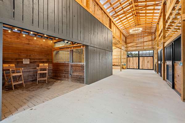 The custom 6-stall 2160 sqft barn offers room for expansion and includes a wash rack and thoughtfully designed functionality for both horse and rider. Barn is also perfect as a shop, car barn or party barn The property is fully fenced and cross-fenced, providing ideal pasture management, along with a charming chicken coop for a true farm-to-table lifestyle.