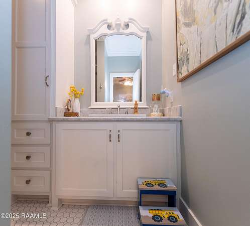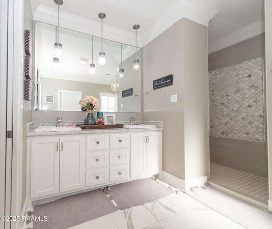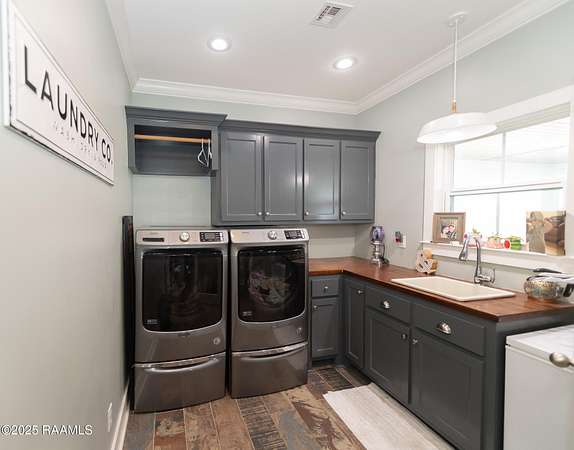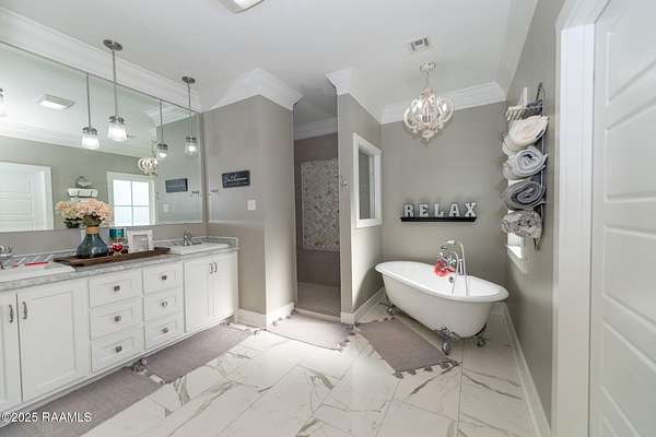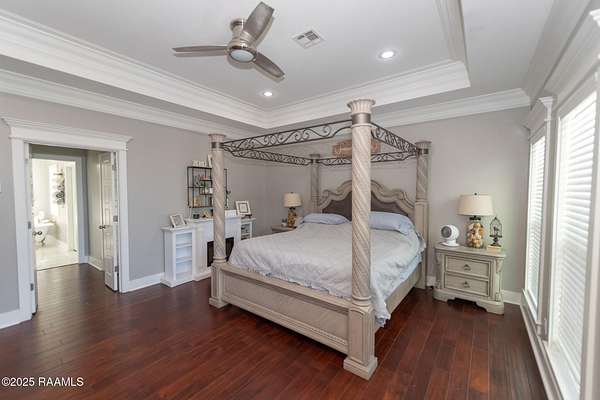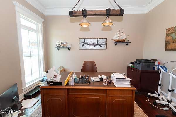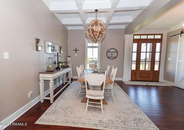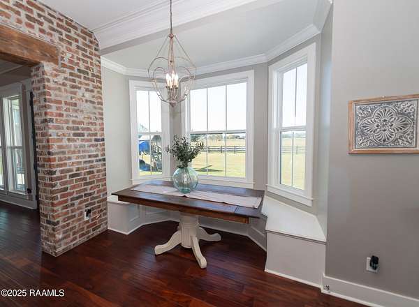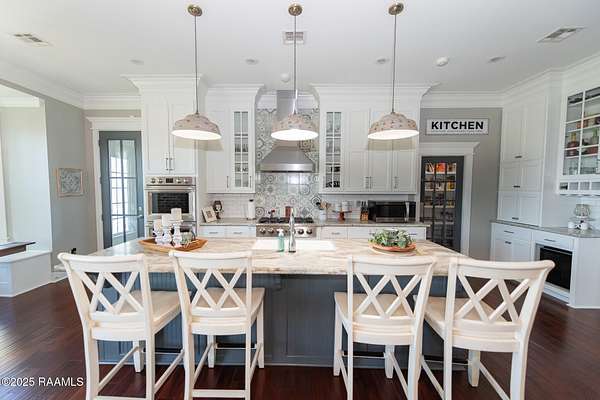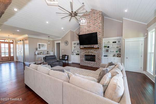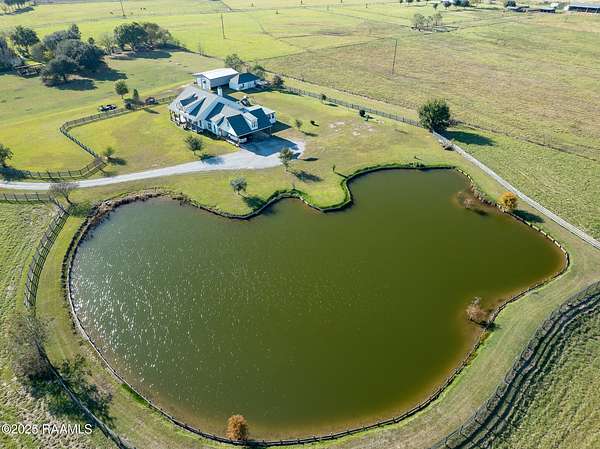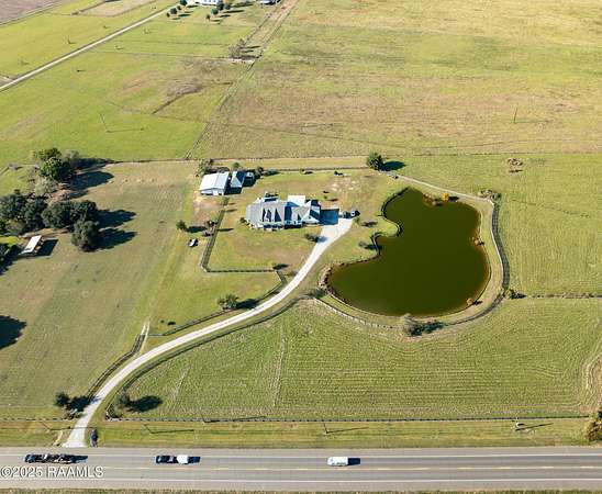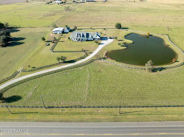 Nestled in Vidrine you will find the home of your dreams sitting on 10.4 acres! The exquisite kitchen has a built-in gas stove, built-in double oven, abundance of storage for all your cooking necessities, walk-in pantry and an island for entertaining. Off the kitchen is a breakfast nook and a formal dining room. The living room has plenty of space to spread out and relax with a built-in cabinets and gas fireplace, so going outside to get firewood in the cold won't be an issue. The primary bedroom has plenty of room for a king-sized bed, a huge walk-in closet with built ins for storing clothes or shoes and is completed with an ensuite bathroom with a separate tub and shower. The 2 additional bedrooms are generous in size with ensuite bathrooms. In the foyer is an office which could also be utilized as a play/game room. Outside you will find a front porch to drink your coffee as you watch the sunrise, double carport, an outside patio kitchen with a built-in fireplace, finished 590 sq ft storage, 1,211 sq ft metal storage and a pond.
