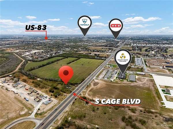 Continue south on Cage-281 past the South Texas College, and the land will be on your right, visible by a large banner for Warrior Law Firm.