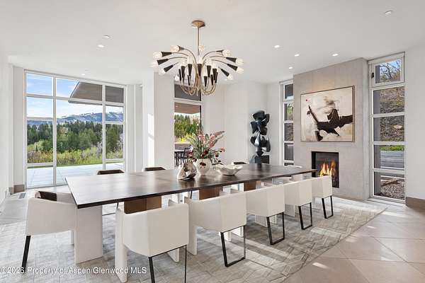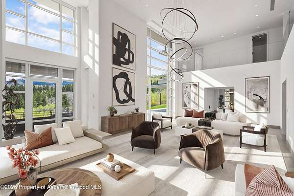 Set on 5.3 private acres at the crest of Eagle Pines, this architecturally distinguished contemporary estate spans approximately 12,700 square feet above grade and offers discreet, owner-only ski-in / ski-out access to Buttermilk Ski Resort. Expansive floor-to-ceiling glazing frames sweeping alpine views and fills the interiors with soft, even natural light, creating a calm and luminous environment throughout. Exceptional ceiling heights, long uninterrupted wall planes, and gallery-scale proportions establish an ideal setting for significant art collections. Clean architectural lines, restrained materials, and carefully balanced proportions create a composed, museum-quiet backdrop while maintaining warmth and livability. Integrated lighting and shading systems allow for precise control, supporting both presentation and preservation. Living spaces flow seamlessly from intimate salons to gracious entertaining areas, extending to expansive outdoor terraces set within the surrounding landscape. Thoughtful acoustics and spatial separation enhance privacy and comfort across the home. Additional features include private staff quarters, a dedicated library, a private cinema, and multiple indoor-outdoor living spaces designed for year-round enjoyment. Located just 12 minutes from the center of Aspen, yet distinctly removed, this is a rare offering where architecture, art, privacy, and alpine access converge in quiet distinction.