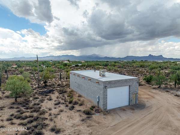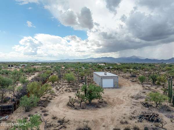 Est $2,242/moNice 4.38 acres parcel with immediate usability of the 1500 sq ft solid block built RV garage with septic, water and electric run to it. Building has a garage area and rooms framed & drywalled, mostly finished which can be used for storage or other use. Half bath framed in. Some flood plain runs through the property, yet nice flat building area for easy construction does exist. Gorgeous natural desert landscape with a walking path that meanders through and around the property. Full fence in place with gate at front.