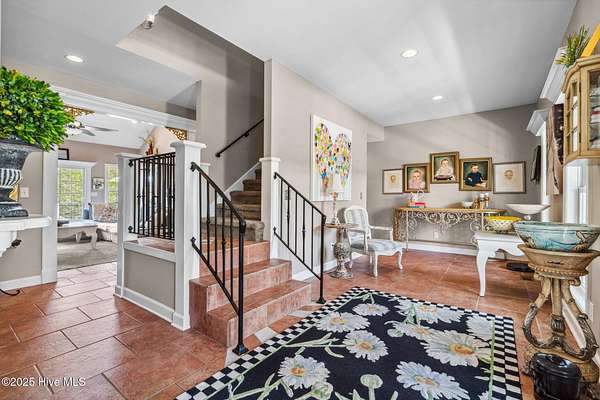 - Basement, Blinds/Shades, Ceiling Fan(s), Entrance Foyer, High Ceilings, Master Downstairs, Mud Room, Pantry, Solid Surface, Vaulted Ceiling(s), Walk-In Closet(s), Walk-In Shower