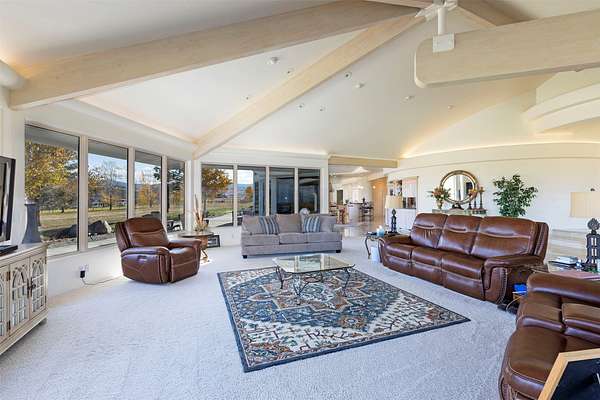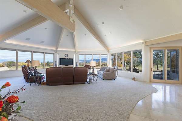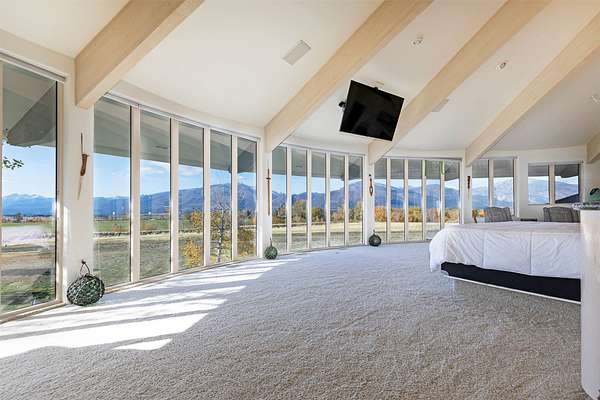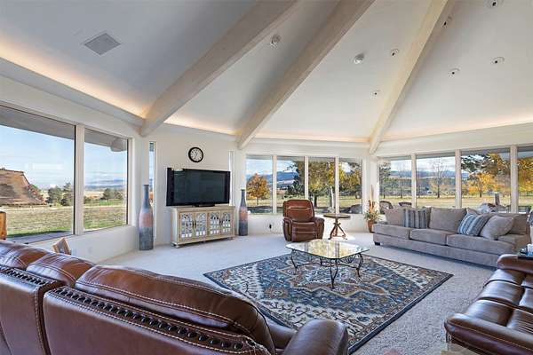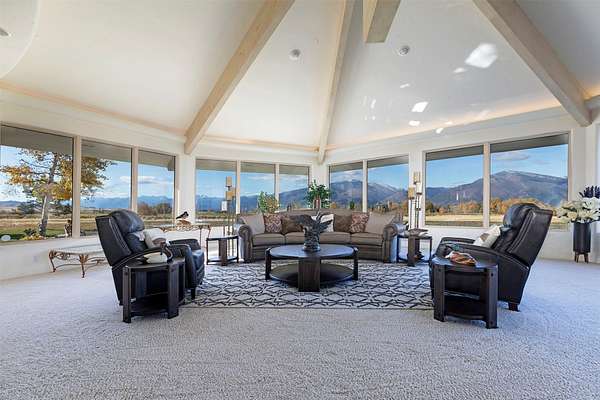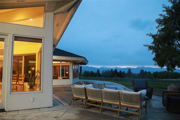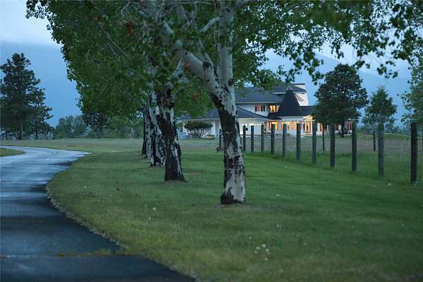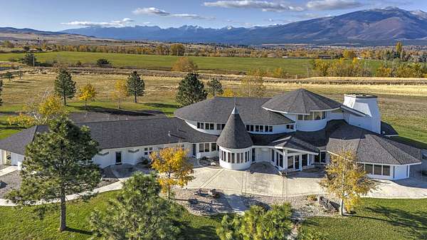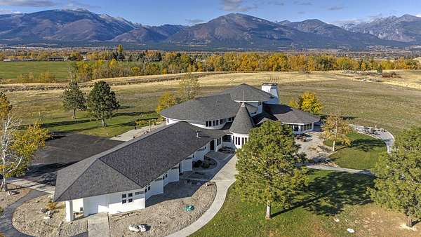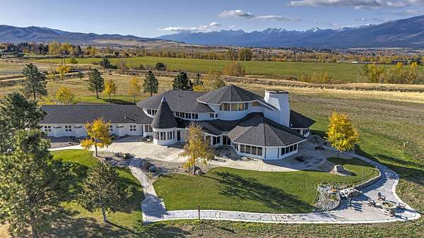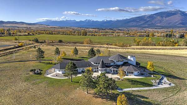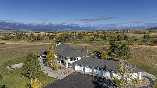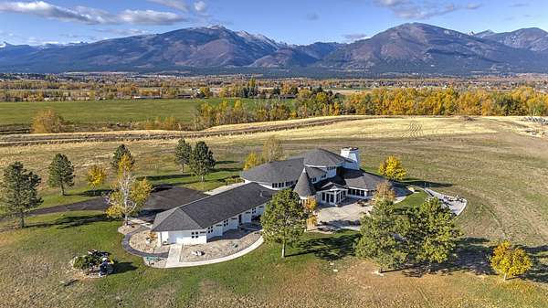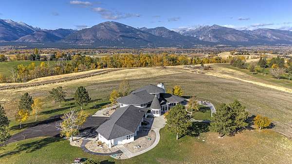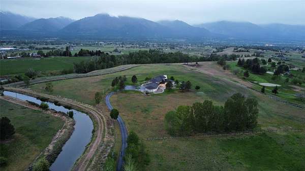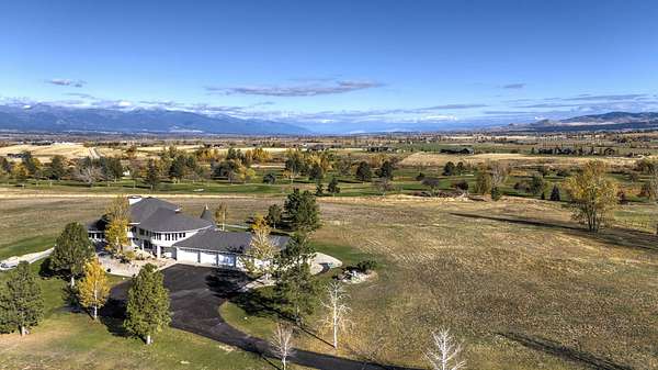 SELLER SAYS SELL!! Stunning panoramic mountain views & beautiful custom 5-bedroom home built with thoughtful craftsmanship, quality & well cared for living space on 16/-acres, near the exclusive Stock Farm Golf & Sporting Club & Public Course. The house features massive exposed beams, granite & marble, and floor-to-ceiling windows with 360-degree views. The spacious two great rooms offer custom fireplaces showcasing an exceptional atmosphere. The incredible, open floor plan provides plenty of room to comfortably entertain large gatherings or relax in front of the cozy fireplaces, enjoying the peaceful quiet and viewing the various types of wildlife, including deer, geese, ducks, and more. Private paradise and the gorgeous, enchanting Bitterroot and Sapphire mountain views. Watch the Bitterroot Valley weather dance through the massive canyons, always displaying a magnificent show. 5-car heated garage and hobby/garden room. Privacy, enchanting views, close to town! See Video Tour. Seller says priced under appraisal!! 6700 sq ft, 4 Fireplaces. Irrigation is set -up from an irrigation well. NEW UPDATES TO THE HOME: *Lighting System. Voice command or app-controlled. LED bulbs throughout. *Energy-efficient blinds with remote-controlled operation in the master bedroom and living rooms. *Updated bathroom fixtures in master bathroom *New exterior paint on entire home ~ 2023 *Driveway black top oiled ~ 2024 *Energy efficient commercial water heater and recirculating pump ~ 2024 *Energy efficient Geothermal heating/cooling system ~ 2025 *Complete remodel on upstairs guest bathroom ~ 2024 *Added upstairs laundry room ~ 2024 *New carpet in guest bedrooms ~ 2023 *2 garage door openers ~ 2024 *New well irrigation system designed to optimize water distribution, enhance efficiency. User friendly programmable controller~ 2024 *Newly established grass pasture ~2024 In the Montana valley where Yellowstone is filmed. Welcome home to your exquisitely built custom home. *End of the road privacy on 16+ acres *1200 ft of golf course frontage *360 degree views *Incredible architecture *Marble flooring *Granite countertops *Fully tiled showers with glass doors *5 car heated garage *2 large wood burning fireplaces *2 Gas fireplaces *Work out room with large sauna and complete shower, vanity sink and toilet area *2 kitchen pantries *Large wet bar perfect for entertaining *Home audio system throughout house, outdoor patios and garage area *Large patio areas for entertaining *Swarovski crystal chandeliers *Built in dressers drawers in master closets, his and hers. Sit down vanity in her closet This home has well appointed walls, lighting and space to showcase art & sculptures. Must see to appreciate the beautifully crafted and carefully engineered staircase. 5 Bedrooms and 5 bathrooms. The home offers spacious bedroom/office space with fireplace on main level, a luxurious sauna, & workout room. Upper level private primary bedroom suite with fireplace & office, two private designer closets with built in wardrobe care station. This elegant home offers a large, airy gourmet kitchen with a chef's cooking and prep station. The stunning custom bar is exceptionally crafted for entertaining. Two lovely living rooms offer fabulous, stunning fireplaces. Formal dining room and kitchen seating areas. The property features numerous outdoor spaces, including an attractive patio ideal for entertaining. Appliances: Jenn Aire. Chef Station has a Viking gas cook top, griddle and grill. The home includes a new lighting & maintenance system that can be maintained on-site or remotely. Private end of the road property on 15+ acres. Horses & cows are allowed.