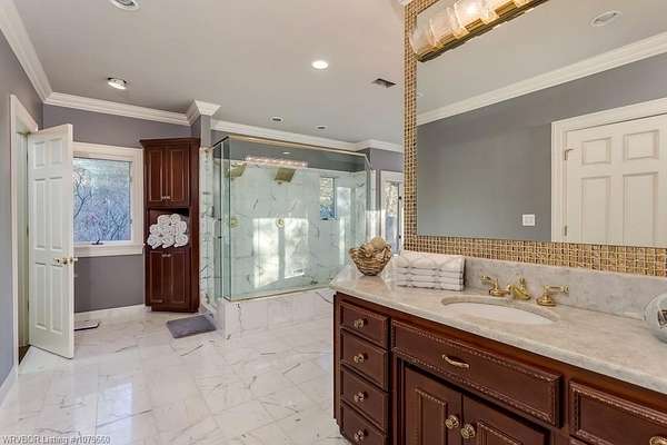 Est $7,215/moPeaceful and Private in the heart of the River Valley! This beautiful home boasts a private drive, in-ground pool, 2-story foyer with custom chandelier and iron work, large and lush landscaping all around, 2 Master Suites, detached garage with a shower, pool storage area, East and West courtyards, finished basement, Observatory room on the 4th floor with 360 degrees view of the property and the beautiful Fort Smith skyline. Attention to every detail make this home exquisite inside and out. The timeless design is a must see!