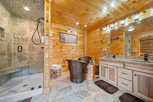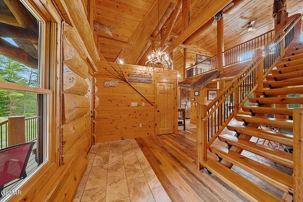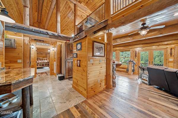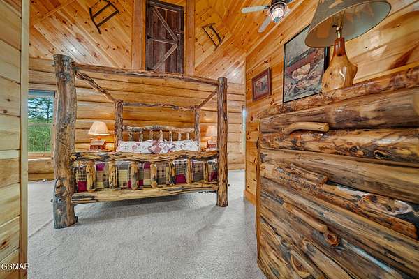 PRICE UPDATE-BRING YOUR OFFER!! Discover your own Smoky Mountain sanctuary on 25.35 unrestricted acres of breathtaking beauty, just 6 miles from the Cosby entrance of the Great Smoky Mountains National Park. This private estate, crafted from XL Majestic Highland custom-built logs, is a showcase of timeless mountain architecture-where rustic charm meets modern luxury. Step inside to soaring spaces filled with natural light from Andersen windows, where every detail is designed for comfort and elegance. Entertaining is effortless with two gourmet kitchens, two fireplaces, and heated tile floors in every bathroom. The home is also pre-wired for a hot tub-imagine relaxing beneath the stars after a day of adventure. Expansive wrap-around decks capture panoramic mountain views, while a massive basement garage, carport, and detached shed provide all the storage you'll ever need. A large barn offers endless possibilities-whether for horses, events, or future expansion. The remote-controlled private gate ensures peace of mind, and a charming guest cottage makes the perfect retreat for extended family or a rental opportunity. This property isn't just a home-it's a vision. A luxury mountain getaway, wedding venue, multi-family compound, or corporate/church retreat-the opportunities are endless. With abundant wildlife including deer, turkey, and the occasional bear, you'll experience the Smokies in their purest form. This estate is where luxury meets the wild-ready for your next chapter. Furniture to convey. YouTube link: