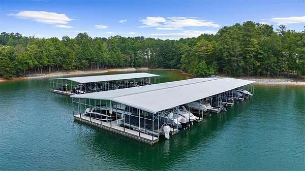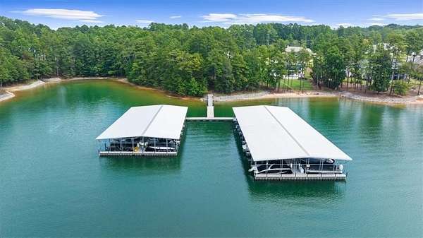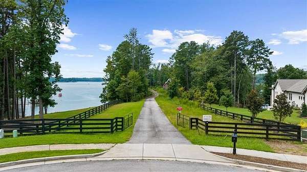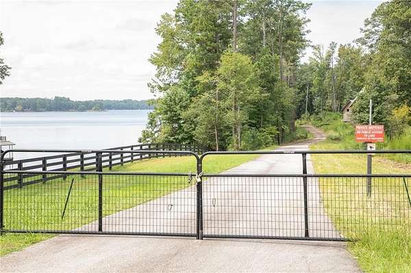 Positioned within the sought after Bay Pointe community, this extraordinary 1.51 acre lake lot with a Private driveway, Gated access and fence, offers an unrivaled setting for your custom estate. Surrounded on three sides by water, with more than 1200 feet of pristine shoreline, a Corps of Engineers walking trail and sandy beaches. the property combines natural beauty and panoramic views with exclusivity and privacy. From sunrise reflections to sunset horizons, every vantage point captures the essence of luxury lakefront living. With a build-ready homesite, you have the rare opportunity to create a residence tailored to your lifestyle-whether it's a contemporary retreat with walls of glass, or a timeless lakefront sanctuary. This is more than a lot; it's the canvas for your legacy on the water. Deeded 12 X 28 boat slip, on Dock A, slip 22, provides an easily accessible position. The Community Dock has water and power, and is golf cart accessible. Quick access to Atlanta via I-985/I-85. Water and electric are on site. Septic needed. House plans are available upon request. Don't miss this opportunity to own your private paradise. Weissman is the preferred closing attorney.