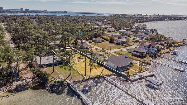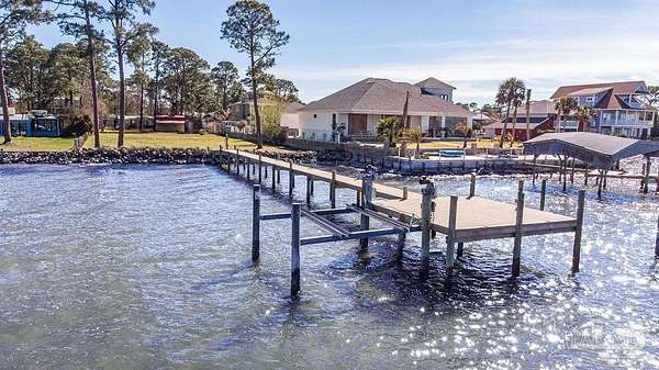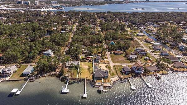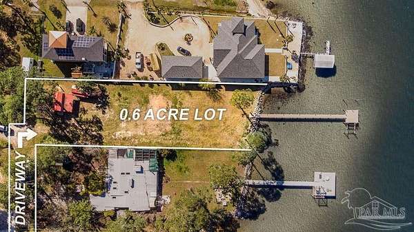 Gorgeous waterfront Lot off Innerarity Point Rd. This over half an acre lot boasts 90 feet of waterfront footage. You can build your dream home or build 2 homes! The lot is zoned for medium residential use allowing more than one structure to be built. No HOA is a plus! The 120 feet of thru flow dock has electrical, water service with a shut off valve and 2 hose bibs. There is a boat lift that is sold "as is". It currently does not work. There are 2 storage buildings that sit on the property. They both have electrical ran to them as well as roughed in wiring for one shed for power to the water heater, mini split, and installed convenience outlets & lights inside & outside. Owner has updated the tiny shed/home with a toilet, shower and sink.