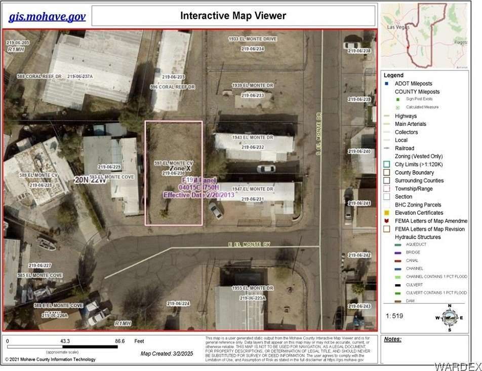 95 TO MARINO BLVD. RIGHT ON HUALAPAI DR. RIGHT ON HARBOR DR. HARBOR TO EL MONTE. LEFT ON EL MONTE COVE. THE LOT ON YOUR RIGHT.