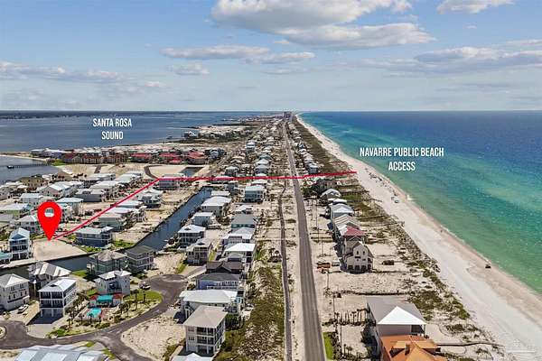 Opportunity to begin Coastal Beach living. Navarre Beach Waterfront Canal lot just a short distance from the Gulf Island National Seashore. 90' water frontage on the canal with 2023 sea wall and room for your beach house. New home floor plans are available. Once your home is complete, fishing and boating are right at your front door. This canal lot is a short distance to the Intercoastal Waterway where you can boat west to Pensacola or east to Destin. The walkover to the Gulf of Mexico is within walking distance. Bring your boat, wave runner, kayak, or paddle board and create lasting memories. Your tropical beach dreams come true here. Navarre Beach is a top-rated beach with white sugar soft sand and emerald green waters. Enjoy boating, amazing fishing, snorkeling, swimming viewing dolphins, egrets, pelicans, and bald eagles. Enjoy walking, biking, or golf carting to The Gulf Island National Seashore's miles of unspoiled and natural beauty. Start relaxing here! Floor Plans and Geo Con report provided to assist you with your plans for Coastal Beach living!