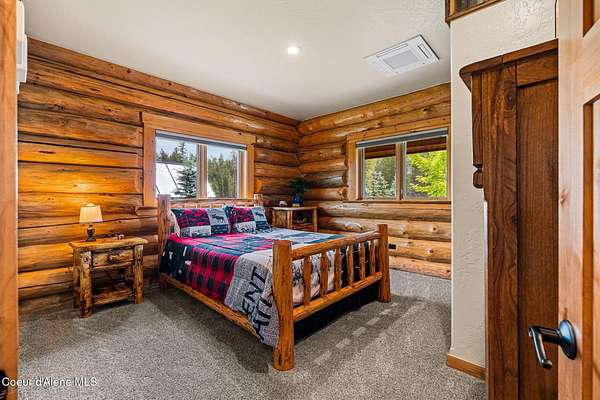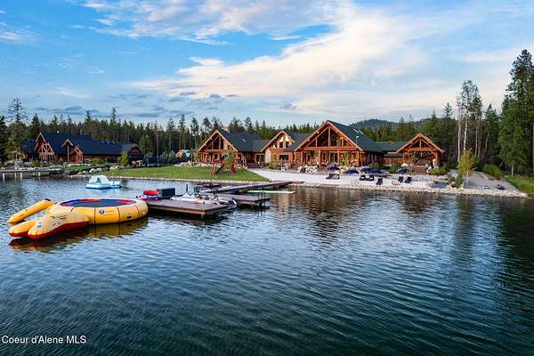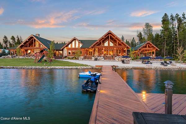 Experience the essence of North Idaho waterfront living with this magnificent Caribou Creek log home. Encompassing 7,748 square feet on 5.1 acres of pristine Pend Oreille river property, this residence showcases exceptional craftsmanship and natural beauty. Featuring six spacious bedrooms and five full baths, it provides ultimate comfort and convenience for family and guests. The centerpiece of the home is its expansive open-concept kitchen, living, and dining area, perfect for seamless entertaining. The kitchen is equipped with custom hickory cabinets, a sub-zero refrigerator, premium appliances, dual composite sinks, dishwashers and built-in microwaves making this a chef's paradise. A versatile loft area offers additional space for an exercise room or extra sleeping quarters. Downstairs, two bedrooms offer breathtaking views of the river and mountains, while three more bedrooms and an additional full bath are located upstairs. The master suite is a luxurious haven with vaulted ceilings, two walk-in closets, a Hydro Tub, and a walk-in shower with dual shower heads. The outdoor spaces are just as impressive, providing a perfect setting to relax and enjoy the natural splendor that surrounds this exceptional property. Fully landscaped with multiple water features and drip systems to keep all the plants thriving. The beach has imported Olympic Volleyball sand. Wash off with two outdoor showers and head up to the pavilion where you'll be invited to sit and cool off with the integrated misters, and a Bluetooth sound system. Carry out the ultimate party with a built-in BBQ and beverage fridge right next to the Passion Swim spa! For all those green thumbs there is a 16'x32' state-of-the-art greenhouse with radiant heated floors, integrated drip system, intake and exhaust fans, along with on-demand hot/cold water. They didn't forget the kids with the custom-built play structures. Fully insulated 60'x30' shop, 6 doors, 220v hook up, and a full upstairs area for storage. It is equipped with heat/ac. Head over to the 40'x80' shop where you'll find four 14' pull-through doors with 16' ceilings. The estate also comes equipped with a 60 KVA generator that powers the whole property! In addition, they have all the lighting on a dawn till dusk electrical system. Security and privacy is paramount, including over 30 commercial grade cameras with full 360 capability. This riverfront gem is a rare find, offering unparalleled amenities and an idyllic lifestyle. Too much to list, please ask your agent to see featured sheet for all the details on property. Owner financing possible with terms dependent on down payment.