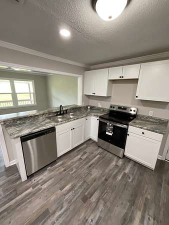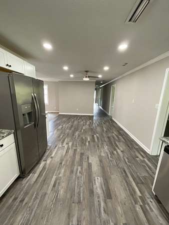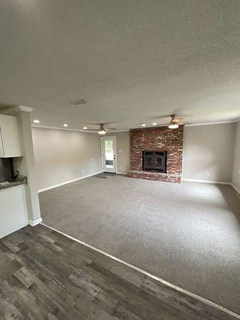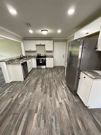 Your country haven is finally on the market! Tucked away off road down a paved driveway, this beautifully refreshed 4-bedroom, 2-bath home sits in the middle of 7 rolling acres complete with its own pond. Inside, everything feels brand-new. Luxury plank flooring, fresh paint, and new lighting flow through the living room and den with fireplace. The adjoining dining room easily seats a crowd and opens to a completely re-imagined kitchen featuring new counters, cabinetry, and a full suite of stainless-steel appliances. Unwind in the spa-inspired custom tile shower, new vanity, and generous walk-in closet. Three additional bedrooms share an updated second bath. Outdoor living was top of mind. Sip your morning coffee on the brand-new front porch with unique railings, then move to the screened back porch for bug-free evenings overlooking the pond. Car enthusiasts and hobbyists will love 5-car garage plus attached carport-room for vehicles, boats, and every toy imaginable. With abundant space, modern finishes, and acreage, this move-in-ready estate delivers the privacy of country life just minutes from town conveniences. Schedule your showing and start living the lifestyle you've been dreaming of!