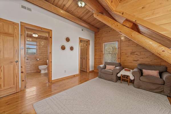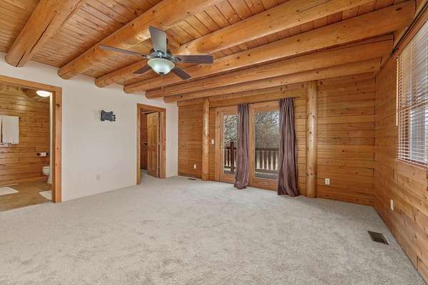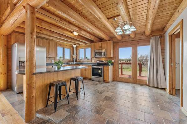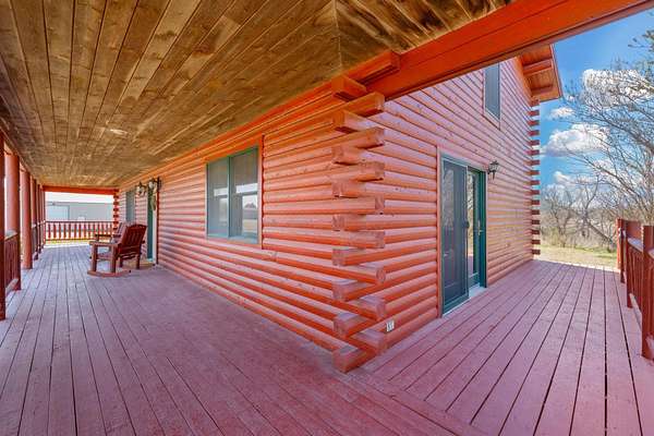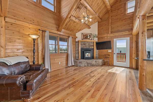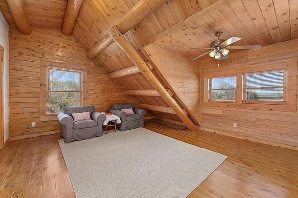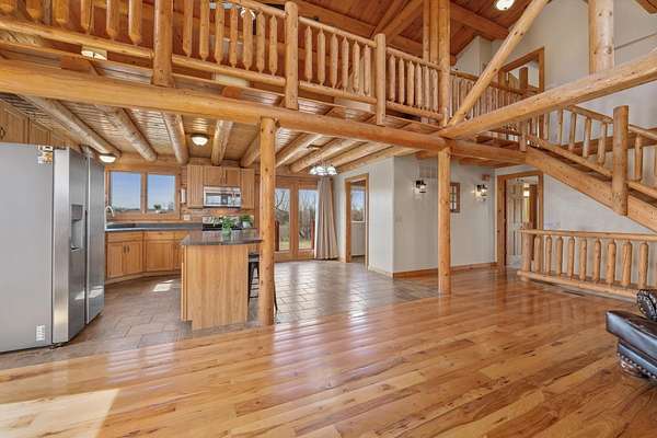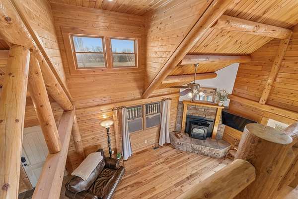 From the moment you turn into the drive, you'll be in awe. Custom-built log home, 40x50 all-steel frame garage/shop with 22x40 loft, 12+ nature-filled acres. This home bursts with rustic charm, featuring a newly resealed and stained cedar-loop exterior and a wraparound porch-many of the planks recently replaced and stained to perfection. Inside you'll find hickory and spruce. The living room features a classic pellet stove. The first of two suites is on this level, complete with a tub/shower combo, walk-in closet, and a private patio door. Step out onto the north porch-your own little spot for a cup of coffee or tea to greet the day. The upper level offers a bright loft, flexible bonus space, and the second suite with a shower and walk-in closet. The basement has a large family room-ready for movie nights-complete with a wet bar. You'll also find the third bedroom, the third bathroom, and a generous nook that could easily serve as an additional bedroom/walk-in closet. Brand-new carpet in the main floor bedroom, on the basement stairs, and throughout the entire basement (minus the bathroom of course - ha!), making every step cozy. The land & the outbuildings are a homestead dream. The impressive shop is a craftsman's or hobbyist's paradise. Or convert part to a horse barn! It can store a 30' camper, plenty of height to add a car lift, features a fully operable half bath, and an additional room already sheetrocked and ready to be finished out (pre-wired for a mini-split!). Access is easy with two 12' tall doors on the north and one 7' door on the west. The pasture is fenced and includes a three-sided shed in the NW corner. Wooden storage shed, and a large hen house with a chicken run (the current occupants can stay should you choose!). A separate fenced area awaits your large garden. And there are two barn cats ready to continue their stellar job of mousing, if you like. A picturesque (though usually dry) creek bed meanders on the property. This home offers high-efficiency systems. HVAC: Hybrid heating system with a 15 SEER air source heat pump and a 94% efficiency propane furnace. Hybrid, electric high-efficiency water heater with Wi-Fi control. An interlock switch on the service panel with a generator hook-up for peace of mind. This retreat is perfectly situated just 10 miles south of Kellogg and Maize Rd. and just two miles east of Clearwater, a welcoming community offering a city pool, grocery store, feed store, multiple restaurants, and more. This property offers the peaceful solitude you crave, yet you can get to town in a jiffy. These peaceful country roads are waiting to bring you home.