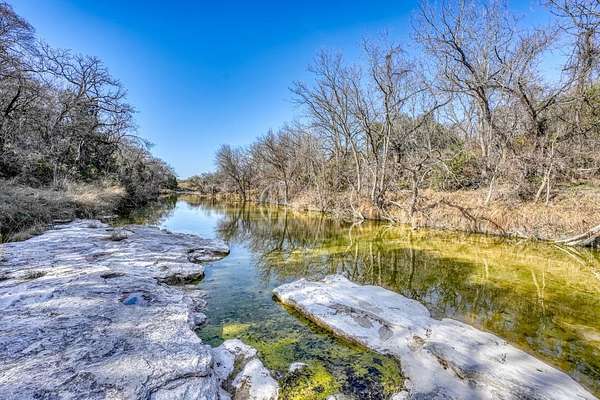 Conveniently located approx 14 miles North of Lampasas. Approx 1.3 miles off Hwy 281. Mostly a cattle grazing, hunting and recreational ranch. Float the creek in optimum weather periods or get your fly rod out at the deep holes and cast away. Drive through the gate on top of the plateau with expansive hill country views. There is a gradual drop of 120' in elevation down to Simms Creek, the beautiful rock bottom creek is the main attraction. Water runs clear most of the time and you can see the bottom and fish swimming by. There are also three stock ponds, one known to have been previously fished. Lampasas County is known for great hunting and diverse wildlife, and Simms Creek 267 has it all. The property provides good habitat for whitetail deer, turkey, dove, ducks, feral hogs, and varmints. A good mix of heavy to moderate tree cover, forbs, and browse help attract wildlife to the ranch. The approx. 1,032 sq ft updated 1940s ranch house includes three bedrooms, one bath, kitchen, enclosed sun porch, separate dining room and living area. With central air/heat for year-round comfort. The natural hardwood floors have been carefully restored to bring back some of the original charm. There is a covered front porch with plenty of room for grilling or just sitting outside during a spring rain shower or enjoying the beautiful sunsets. The barn is perfect for storing your tractor, UTVs and ATVs. There is an old hay barn/horse stall. The ranch is blessed with ample water supplied by a 60 gpm private well.