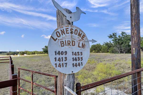 From Burnet take 963 off Hwy 281, right Shady Grove Rd 6.1 miles, left CR 200A, 1.3 miles, see entrance to 7 Creeks neighborhood, take right on Lonesome Bird Lane, continue on Lonesome Bird for approx 1 mile (cross 2nd & 3rd gates), drive of 1425 Lonesome Bird Ln on left