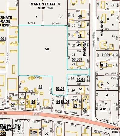 Est $1,907/moThis approx. 6+/- acre parcel can be joined with the approx. one-half acre parcel on Moffett Road to have Moffet Road access. The MLS # is 619833. The property is across the road from the Hickory Pit Restaurant and down a little. What an opportunity to own approx. 6.5 acres on Moffett Road, have a business, apartments, etc. - right in the heart of Semmes! Priced well.