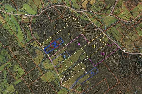 From County Hwy 14 Take Warren Hill Road, property on left. Pink survey ribbons and posts say lot numbers