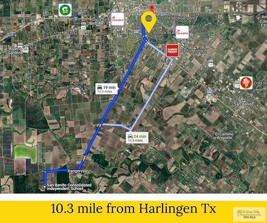 Est $5,613/moexcellent opportunity , this land may be best for agricultural or recreational purposes , irrigation system included , this land is perfect to grow fruits or vegetables, to grow farm animals , additional one section was leveled perfect to build a Green House , a warehouse , or truck parking purposes . just 10 mins from los Indios Innternational Bridge , perfect location for international business. only 10 miles from Harlingen City , 12 miles to the expressway. Some services available call for more info.