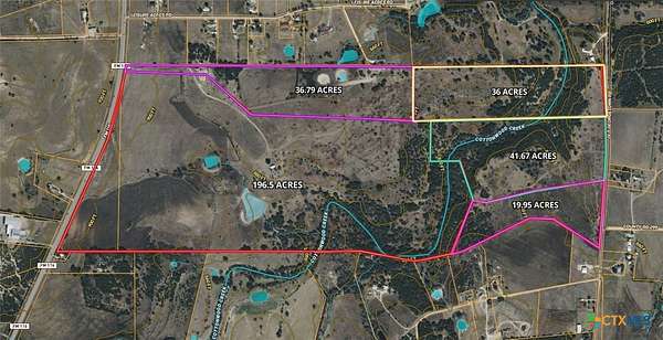 196.5+/- Acre Ranch - Gatesville, TX This 196.5-acre ranch, located just south of Gatesville off FM 116, offers an exceptional blend of productive pasture, wooded privacy, and natural beauty. With rolling terrain and an 80-foot elevation change, the property provides sweeping views of the surrounding countryside and multiple ideal homesites for your dream ranch retreat. The land is approximately 60% open pasture, well-suited for cattle or horses, with the balance covered in a diverse mix of hardwoods-Oak, Pecan, Mesquite, and Cedar-providing excellent shade, wildlife habitat, and character. Cottonwood Creek meanders through the ranch, accented by 10-20 ft. limestone bluffs that add a dramatic backdrop and create a one-of-a-kind setting. Water is a true highlight: a windmill water well supplies reliable water, complemented by a smaller stock tank and a newly constructed tank over an acre in size, perfect for livestock, wildlife, or fishing. Improvements include a 30' x 60' barn, functional cattle pens, and well-maintained fencing, making the property immediately usable for livestock operations. The open pastures provide strong grazing potential, while the wooded areas offer cover for wildlife, making this ranch equally attractive for both ranching and recreational pursuits. The location combines seclusion with accessibility-just 2.3 miles from Coryell Health Hospital, within Gatesville ISD, and a short 30-minute drive to Waco, Temple, or Killeen. Whether you are seeking a working cattle ranch, a recreational getaway, or a scenic place to build a custom home, this property offers the versatility to fit your vision. With its blend of improvements, water resources, dramatic creek frontage, and rolling views, this ranch represents a rare opportunity to own a showcase property in the heart of Central Texas.