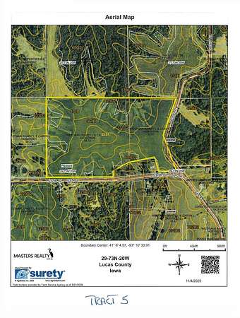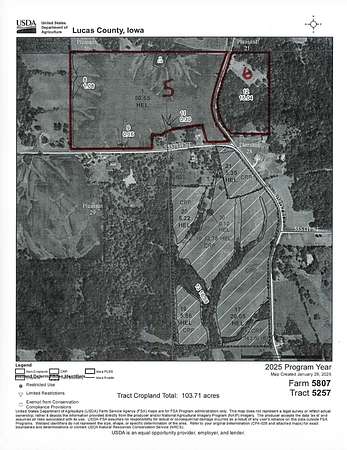 Est $3,076/moProudly presenting the Randy and Caryn Westman Farm - this is fifth of six exceptional tracts located in scenic Lucas County, Iowa in Pleasant Township. This tract offers 50.65 high quality tillable acres bordering timber and CRP. Secluded and peaceful with convenient road frontage for easy access.