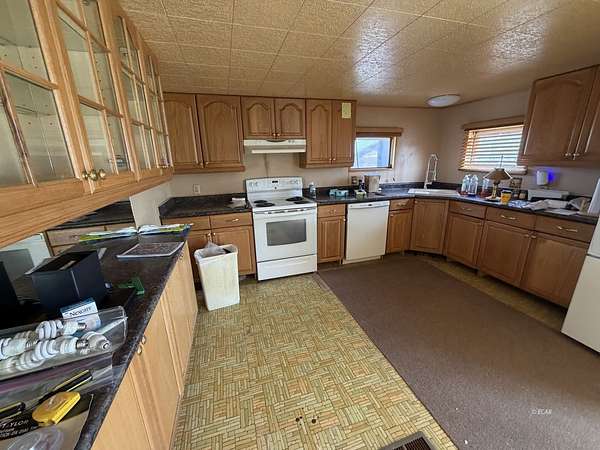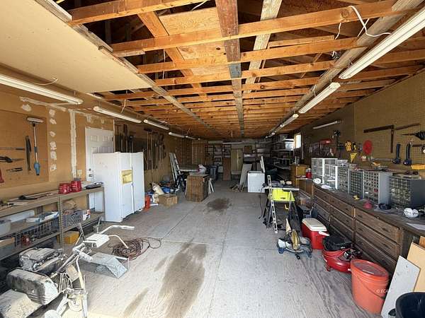 This home shows signs of care in development and functional rural living. The seller stated there are 127 trees on the property, above ground sprinklers, railroad tie driveway boundaries and native great basin plants surrounding. It has 2 storage sheds, 1 large workshop/ garage and a partially subsurface pump house. The property is fully fenced with a gate at the entrance. The home has an elevated deck that surrounds about 75% of the home offering beautiful views in every direction. The addition has a large laundry room that can double as a hobby area or pantry perhaps. This property has great Elko County maintained access, power, water and septic already installed. Buyer to verify information, access, utilities and perform their own due diligence.