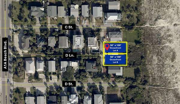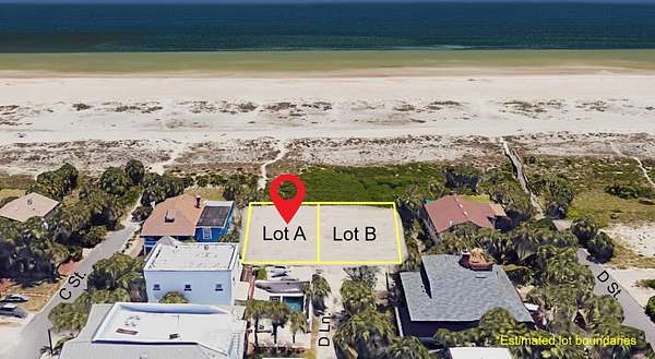 Est $10,794/moOceanfront Lot in Prime St. Augustine Beach Location! This 50 x 100 ft residential lot offers unobstructed views of the Atlantic and direct access to the beautiful white sands of St. Augustine Beach. Nestled in a walkable, vibrant coastal community with no HOA restrictions, it's the perfect place to design and build your custom beachfront escape. A rare opportunity in one of Floridas most beloved beach towns! The adjacent 50 x 100 ft lot (Lot B) is also available. See the photos for details.