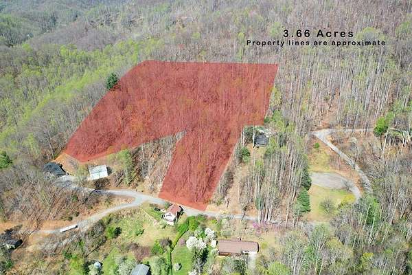 From Waynesville take Great Smoky Mtn. Expressway (Towards Sylva), right on Skyland Drive, right on Willets Road, right on Dark Ridge Rd, right on Lick Log Rd. Then left on Top Drop Lane, bear right up the hill past white "No outlet No turnaround" sign. You will bear right at the gate located at 95 Top Drop Lane to property.
