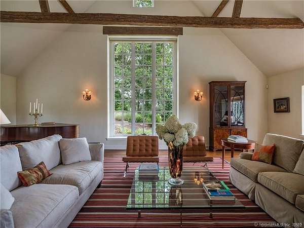Introducing The Marsh House...a remarkable waterfront Village estate that incorporates a Main residence, sited at 1 Neck Road...originally a sheep barn constructed entirely of stone in 1912, and subsequently renovated with stunning architectural detail including massive floor to ceiling, multi-paned arched windows, beautiful slate roofing and lush, professionally landscaped grounds punctuated by mature gardens and specimen trees, a tennis court and sparkling pool surrounded by naturalistic plantings. Each room of this incredible residence has its own personality, both formal and informal, incorporating soaring ceilings and filled with natural light. Across the generous lower motor court, the unique and charming Boathouse serves as separate guest quarters, complete with a fully updated kitchen, Great Room and upper level bedroom and bath. The third residence C1900, designated as 3 Neck Road and appropriately called the Gate House, is a two bedroom home, sited on its own .96 acre parcel of land with separate access, perfect as additional guest or caretaker quarters. There is also the potential for a separate building lot set away from the Main house. All structures merge seamlessly on the expansive 14.6 acre property that fronts directly on the Lieutenant River...and incredibly all this in the heart of Old Lyme Village. Simply irresistible!