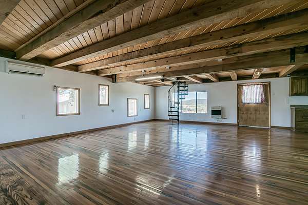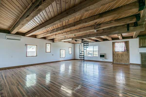 Newly paved roads to the property.Unique multi-use property on 5.21 acres with meadows, trees, and mountain views. The standout feature is the fully insulated 45' x 80' workshop/garage building, offering approximately 3,225 sq. ft. of space. Constructed with metal beams and high ceilings, this structure includes two office spaces with gas wall heaters, a half bath, loft storage, and capacity for up to 10 vehicles. Ideal for business use, vehicle storage, or hobby space. The 3030 sq. ft. main house features a owned 5.88KW PV solar panel system, a downstairs primary bedroom with two walk-in closets, 3/4 bathroom and private outdoor access. Spacious kitchen with solid wood cabinets, six-burner stainless steel range, large pantry, tons of counter top space and views of the valley and meadows.