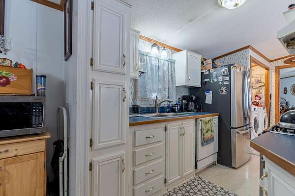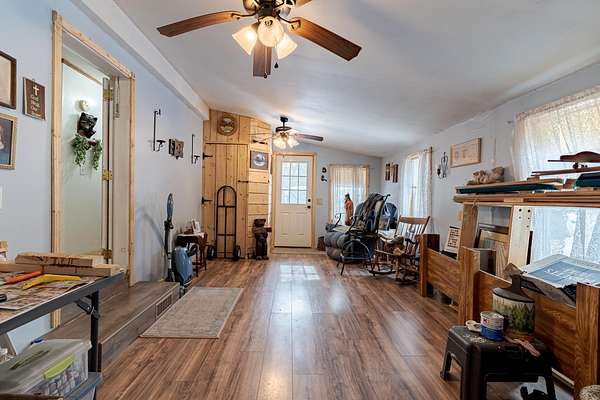 Tucked away on a private 1.58 acre lot, this Milton property offers space, privacy, and convenience all in one package. The level, open yard is fenced with a gated entrance and surrounded by trees, creating a peaceful retreat just minutes from Milton Three Ponds and nearby sandy beach access. The property features a double-wide home, wrap-around driveway, metal roof, and generator hookup. An added bonus is the campsite with an RV hookup, complete with electric, water, and septic, perfect for guests, hobbies, or extra flexibility. Step inside from the porch into a spacious living room, where a new pellet stove creates a warm and cozy atmosphere. Sliding doors lead to a dedicated office or workspace, ideal for remote work or a quiet retreat. Just a step up, the dining area opens to the kitchen, featuring an island, ample cabinetry, and generous counter space. Laundry is conveniently tucked away in a closet. The home offers a smart split bedroom layout, with a bedroom and bathroom on each side, including one en-suite, providing both privacy and functionality. Enjoy the best of Milton living with a private setting, versatile amenities, and close proximity to the water, all in one property. Open House Saturday February 21st from 11 to 1.
