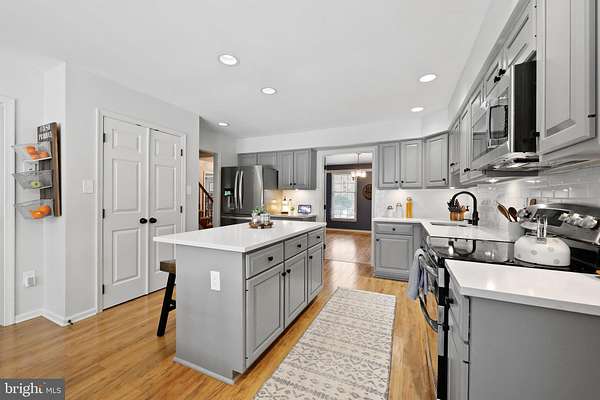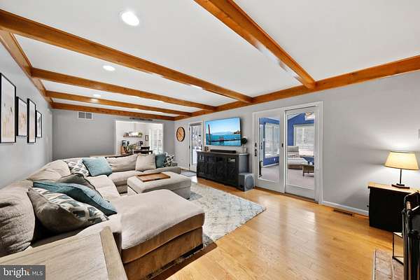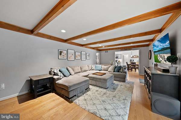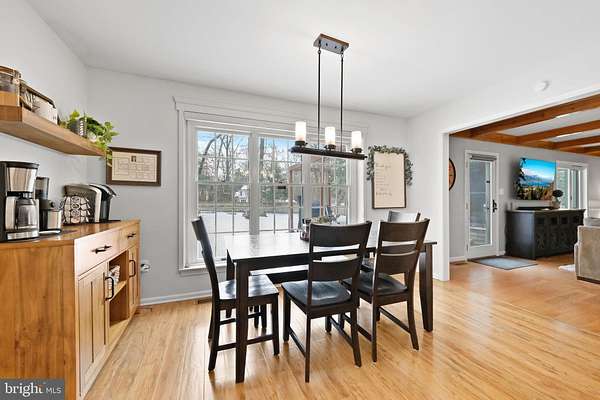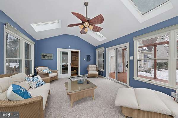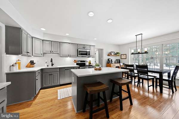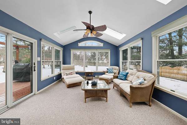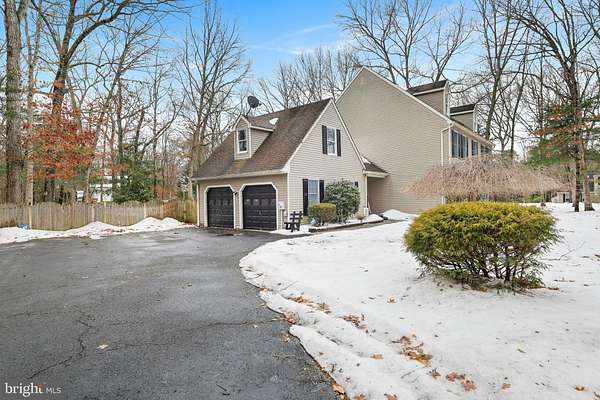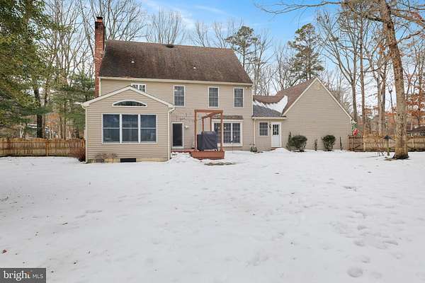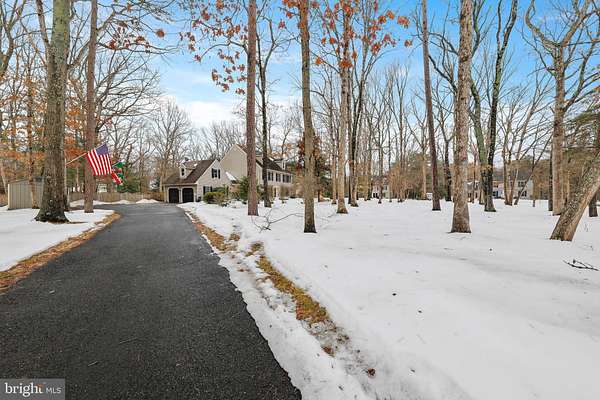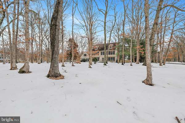 Elegant center-hall Colonial set on a pristine 1.5-acre corner lot in the sought-after Wilderness Acres community of Shamong. This beautifully appointed residence offers 4 bedrooms and 2.5 bathrooms, blending classic architecture with refined modern upgrades throughout. A grand open foyer welcomes you into sun-filled living and family rooms adorned with rich hardwood flooring. The family room is highlighted by striking exposed beams and a warm, inviting fireplace-perfect for both everyday living and upscale entertaining. The expansive sunroom is a standout feature, showcasing vaulted ceilings, skylights, and walls of windows that flood the space with natural light, with direct access to a newly updated deck featuring brand-new decking boards. The chef's kitchen is thoughtfully designed with a seating area, generous quartz countertops, custom subway tile backsplash, stainless steel appliances, center island, new dishwasher, tile flooring, updated lighting, and an oversized pantry offering exceptional storage. The main level also includes a spacious laundry room with hardwood flooring and convenient access to both the front and rear entrances. The insulated garage provides built-in shelving and additional storage space. Upstairs, four generously sized bedrooms offer comfort and privacy, including two with walk-in closets. The refined hall bathroom features tile flooring, a newer vanity, and a sleek glass-enclosed shower/tub. The luxurious primary suite is a private retreat, complete with a large walk-in closet, bonus storage closets, and a spa-inspired en-suite bath featuring custom tile work, granite countertops, a large stall shower, and a jetted soaking tub. The fully finished basement offers exceptional versatility with a dedicated gym, recreation room, and expansive entertaining space-ideal for hosting, relaxing, or creating a private retreat. Outdoors, enjoy a newly fenced, private backyard oasis featuring an updated deck, and tranquil natural surroundings. Additional premium upgrades include a newer ADT security system, in-ground sprinkler system, brand-new hot water heater, brand-new air conditioner, and updated light fixtures throughout. This move-in-ready home offers refined living, exceptional craftsmanship, and timeless appeal in a peaceful, private setting.
