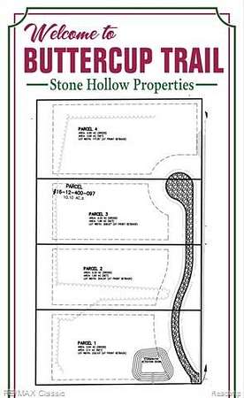 Stunning 4 bedroom 3 1/2 Bath 1st floor Master ready to be customized by the buyer. New road is in on these pristine, 2.5 acre lots close to downtown Milford but like being in the country. Colors & Finishes to be picked out by new buyer. Or, if you want to build a custom plan we can do that as well. We have plans to choose from & customize or bring us your plan. 1st floor Master. Wooded lot backs to woods with pond. 4 car Garage. Buy now & Choose all the details of your new home and move in the spring to summer of 2026. This 1st floor Master boasts an open floor plan, Granite Island Kitchen open to nook & Great room w/Vaulted Ceiling, Gas Fireplace with stone surround & wood mantle. Hardwood floors. Large Master w/2 person all Tile Shower, Euro Glass & free standing tub, Dual Granite Vanities & large walk in closet. 3 bedrooms upstairs w/office & large bedrooms. Exact Model being built and for sale at 331 Dawson in Milford. Other style models available to tour that we are custom building for other customers or visit Stone Hollow website to see 3 D tours of many of our previous builds from 2100 sq ft to 8000 sq ft. Other lots available as well in the same cul de sac with varying lot sized. See 3 D tours attached to this listing of previous homes built. 2 other spec homes and other lots in, Milford, Highland, Hartland, White lake & Fenton available. We can build on Your lot or ours. Your plan or ours. 3500 sq ft Ranch on Pine Bluffs Ct in Highland available to walk through. Buttercup Trail has no association so pole barns, fences, chickens & horses allowed. Waterfront Lots to build also available on White Lake, Duck lake & Lake Ponemah. Call, text or email for more details.