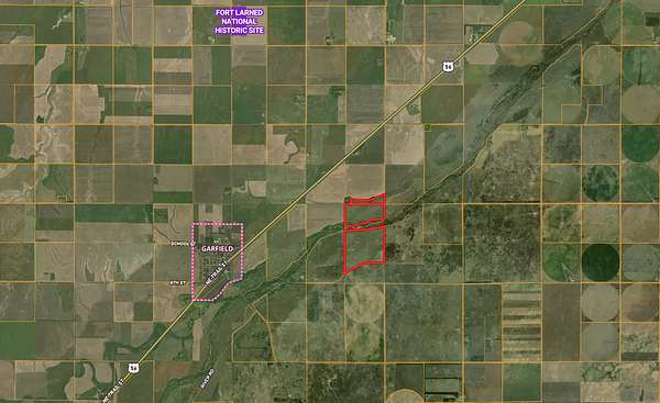 This exceptional 242+- acre property near Garfield, Kansas offers the perfect combination of recreational opportunity and steady income production. With ownership on both sides of the Arkansas River and approximately 1,750 yards of river frontage, the property provides incredible access, scenery, and diverse habitat. It is easily accessible from both sides, featuring heavy fencing, solid gates, and a reliable water well with a pump and tank rebuilt in 2024.