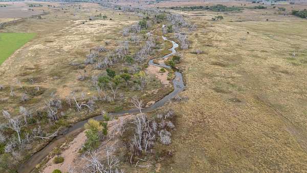 The ranch features a diverse landscape of rolling Sandhills, native grasses, plum thickets, and fertile river bottom ground. Elevation changes of up to 100 feet create a dynamic mix of valleys, ponds, and natural cover, supporting outstanding wildlife habitat for deer, turkey, quail, pheasant, and waterfowl. With ownership on both sides of the Arkansas River and approximately 1,750 yards of river frontage, the property offers unmatched access to water, travel corridors, and year-round recreation.