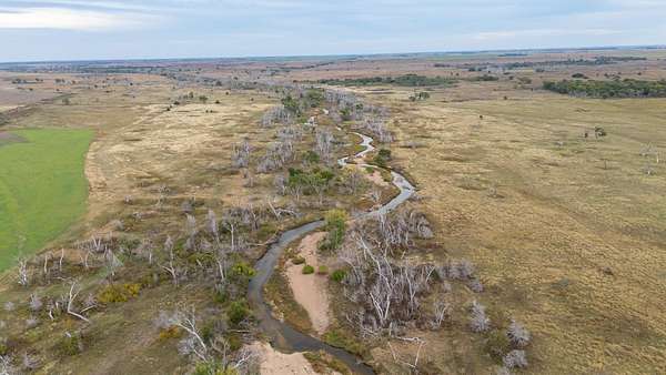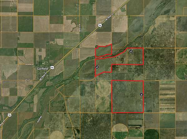 Discover a rare opportunity to own approximately 1,130 +/- acres along the Arkansas River near Garfield, Kansas, offering an exceptional combination of productive pasture, income-generating farmland, and premier recreational habitat. Located just minutes from Garfield and Highway 56, this large-scale tract provides both convenient access and a private, scenic setting in a region well known for trophy whitetail deer, upland birds, and strong agricultural production.